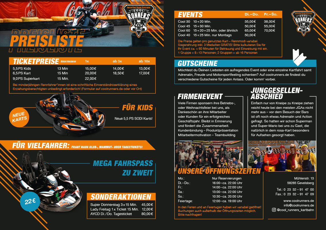 Wenn Du Dir einen Helm von uns leihen möchtest, musst Du aus hygienischen Gründen eine Schutzhaube tragen. Den Helm gibt’s gratis, die Sturmhaube kostet 3,50€ und ist dann Dein Eigentum – kleiner Tipp: leg sie in Dein Handschuhfach vom Auto, dann hast Du sie fürs nächste Mal griffbereit! Für Rennevents ab 15 Personen gelten auch unsere Cool 30, Cool 45 oder Cool 60 Angebote oder wir erstellen Dir gerne ein individuelles Angebot mit Teamrace und 9PS Rennkart Schnupperkurs!